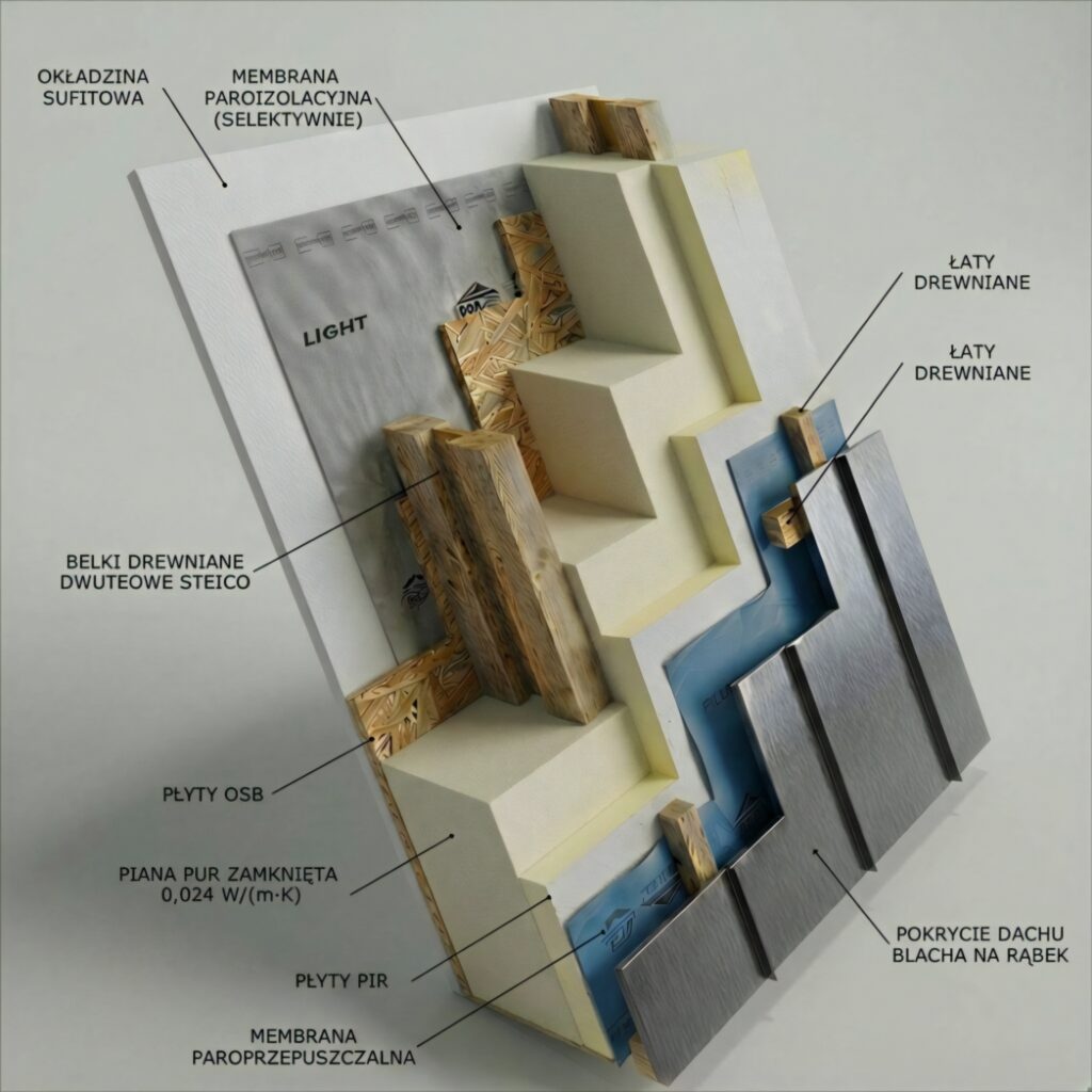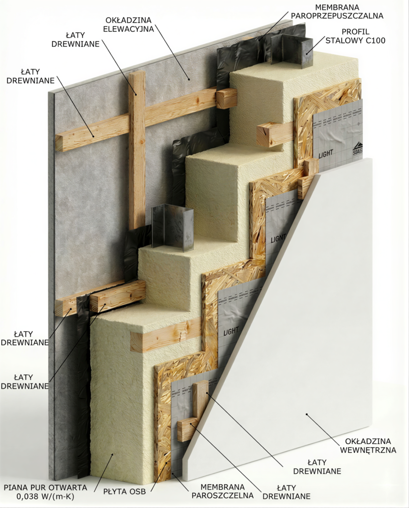 Przekroje przegród zgodnie z Warunkami Technicznymi WT2021 dla domów mieszkalnych.