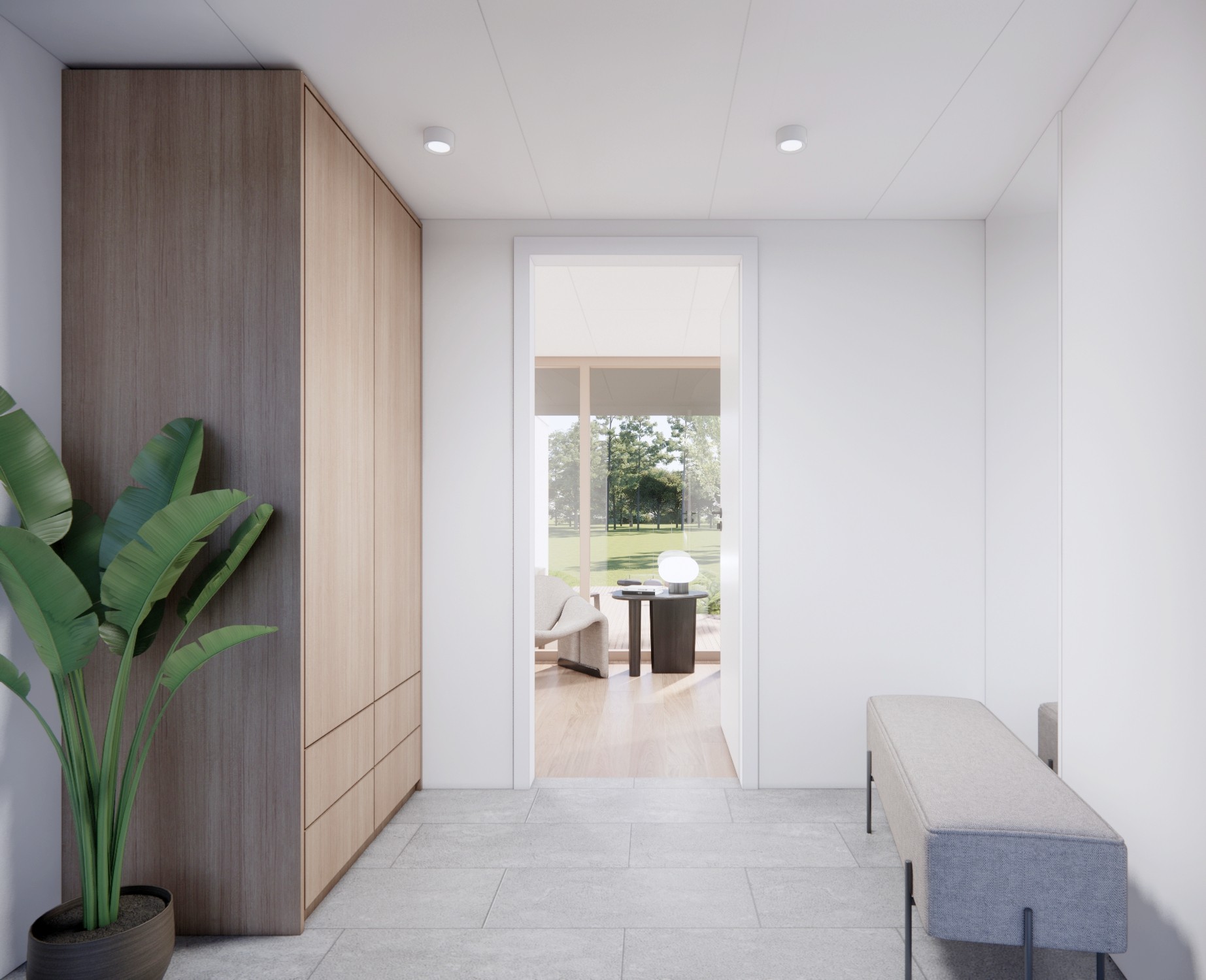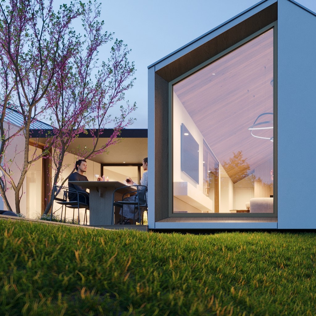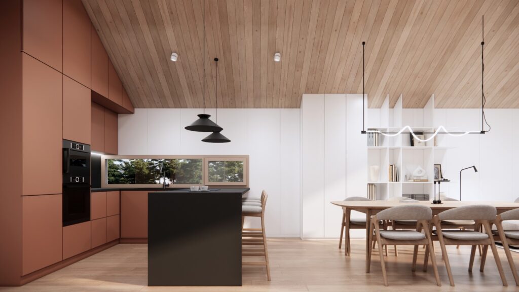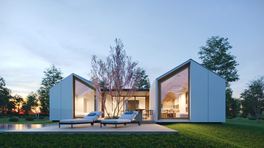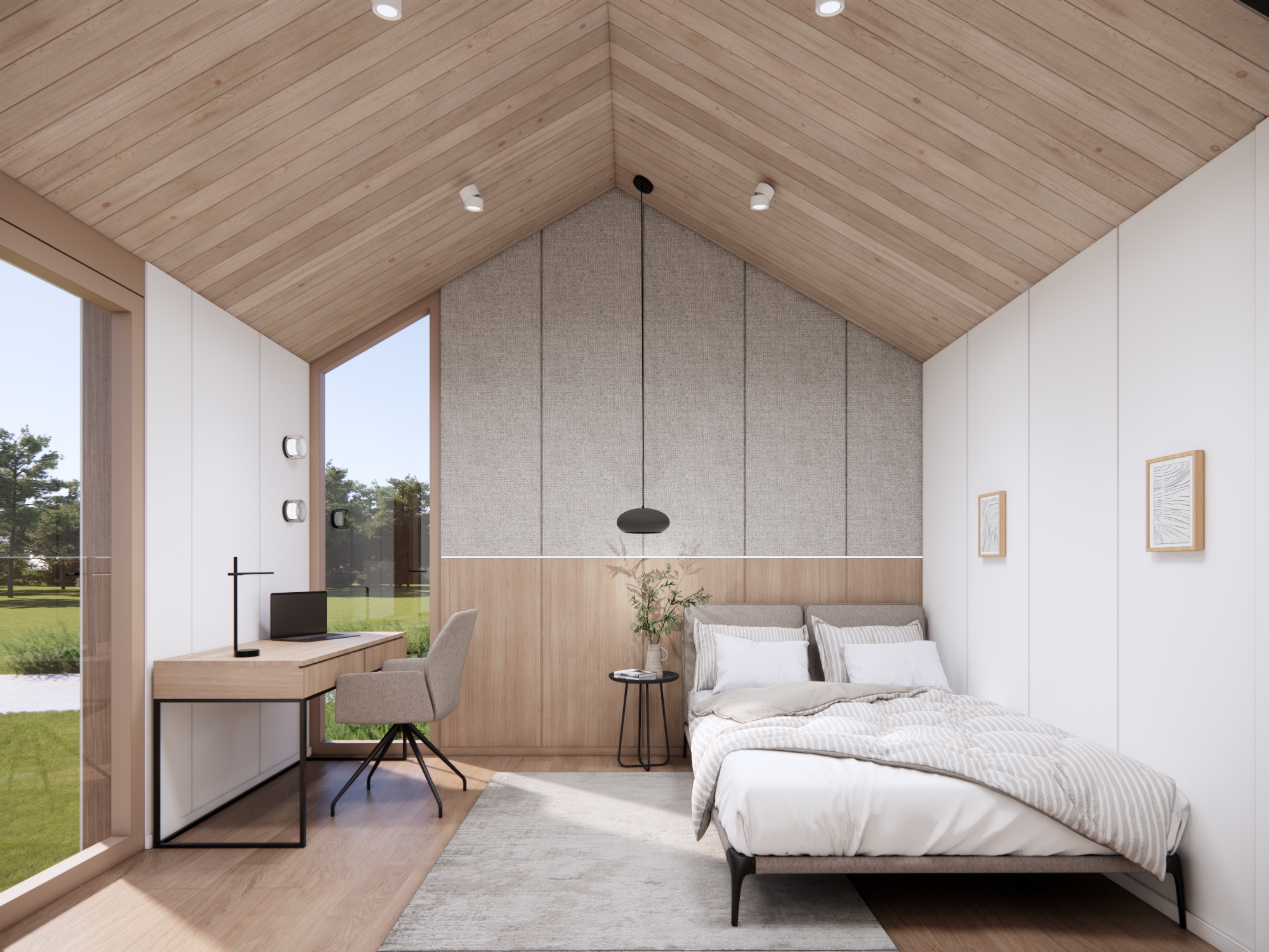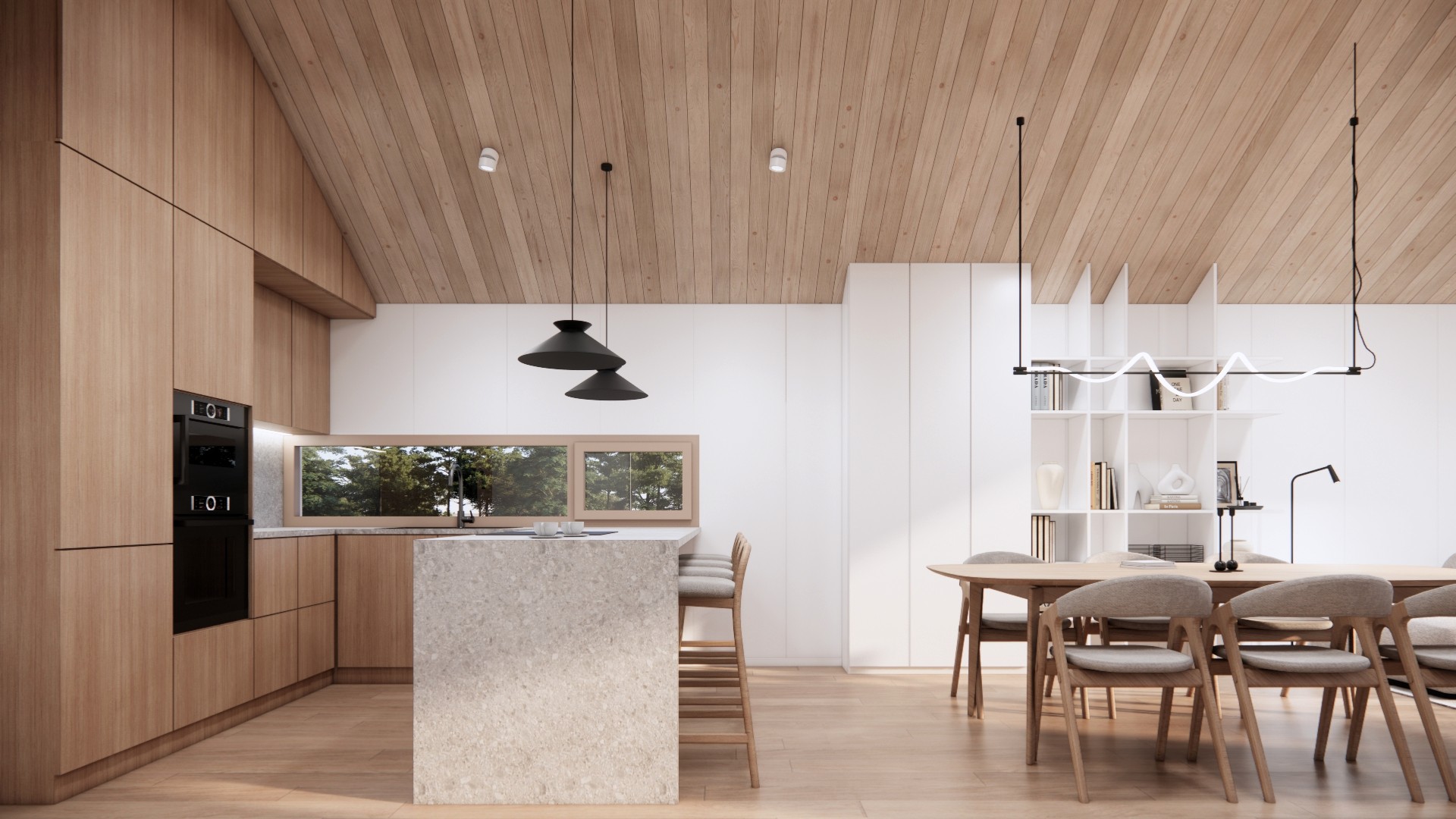 NAURA 109m² to bryła złożona z trzech modułów oraz dużym narożnym przeszkleniem zapewniającym wyjątkowy wygląd. Nowoczesna dom składający się z dwóch głównych modułów z dachem 30° oraz łącznika z dachem płaskim. Budynek posiada funkcjonalnie rozplanowane wnętrze dzięki temu, że przestronna strefa dzienna oraz kuchnia połączone są łącznikiem tworząc jadalnie. Mamy do dyspozycji trzy niezależne sypialnie, 2 łazienki oraz przestronny hall wejściowy.