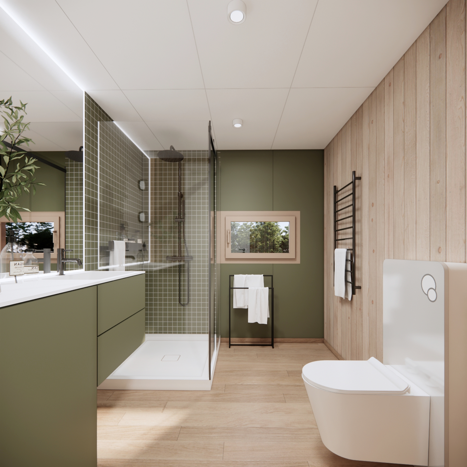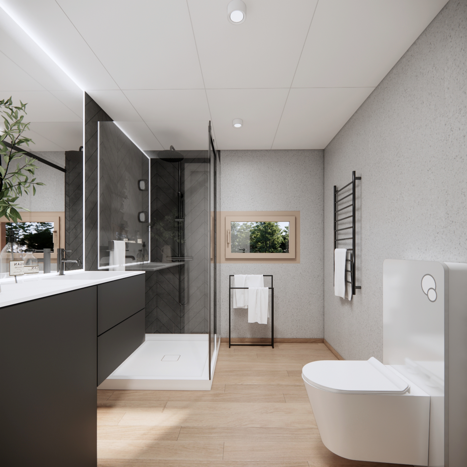• w pełni gotowa i urządzona łazienka - z kabiną prysznicową, WC podwieszane, szafka z umywalką, grzejnik drabinkowy, ogrzewanie podłogowe