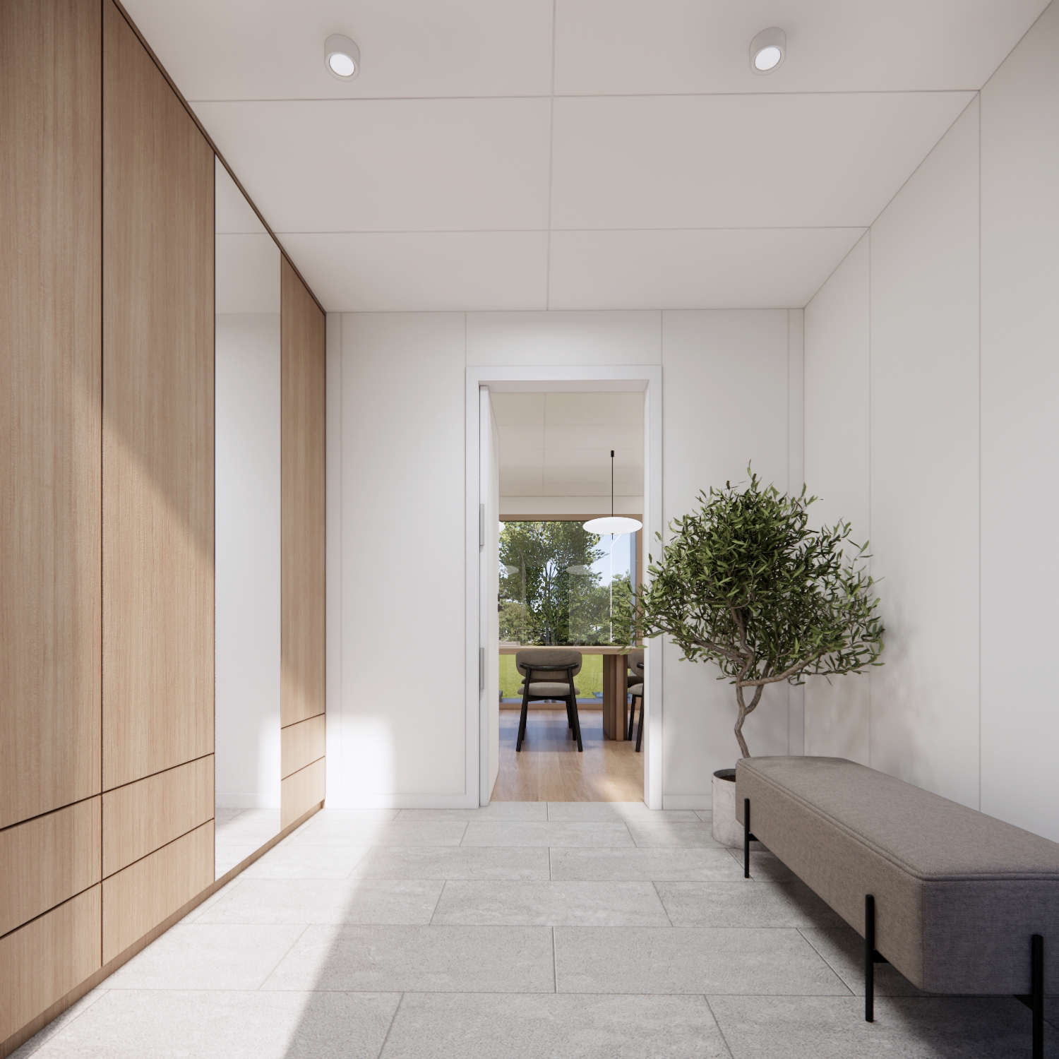 • szafa wnękowa w przedpokoju wraz z siedziskiem tapicerowanym