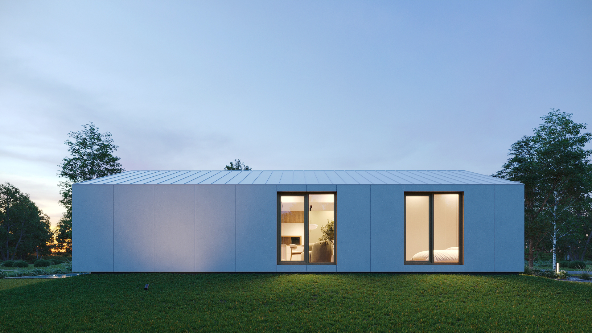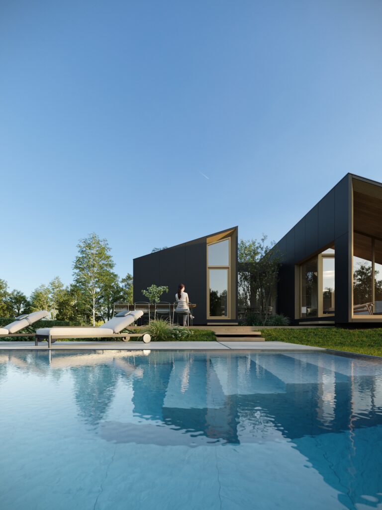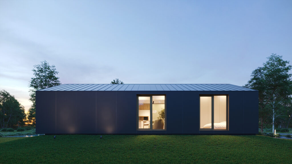 • gotowy dom w konstrukcji stalowej złożony w 3 modułach