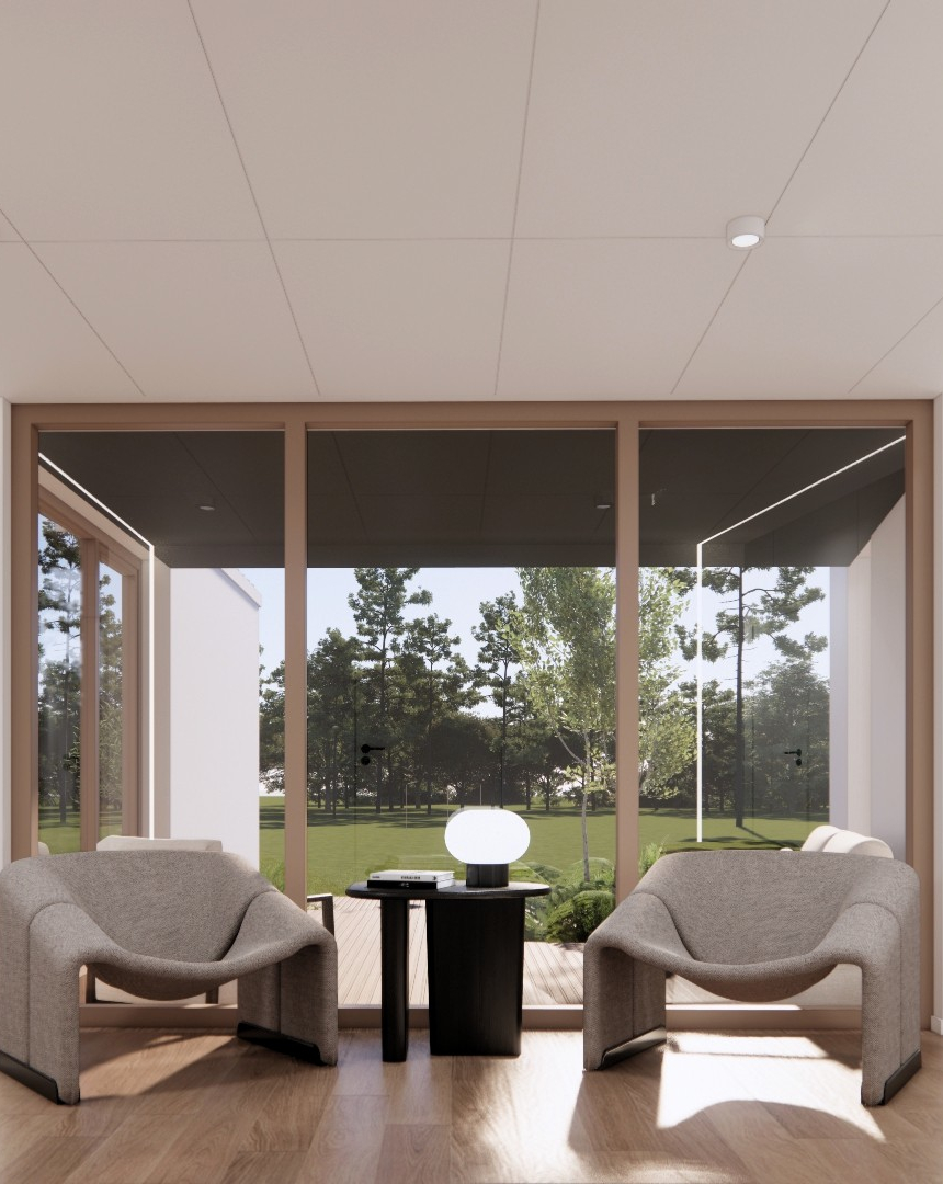 Okna 3 szybowe na ciepłym profilu 82mm z laminatem obustronnym. Ciepły montaż gwarantujący komfort cieplny i minimalne straty energii. Obróbka zewnętrzna okien wykonana z trwałych paneli Rockpanel.